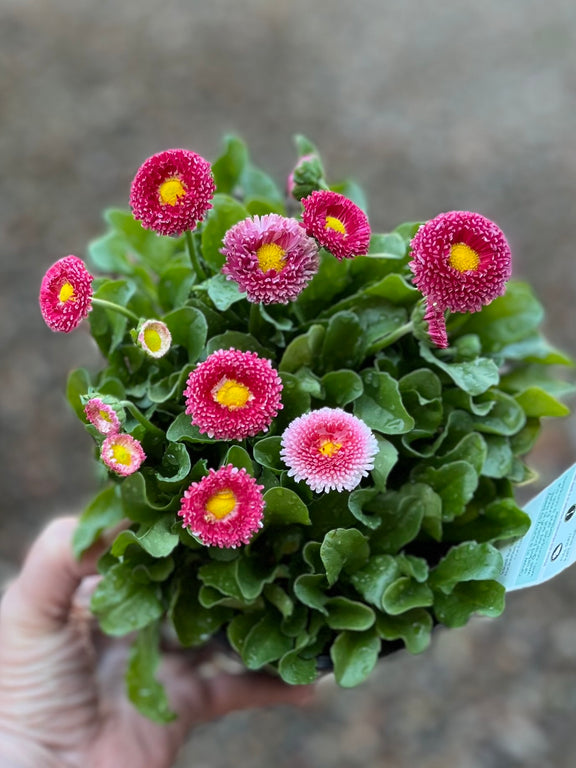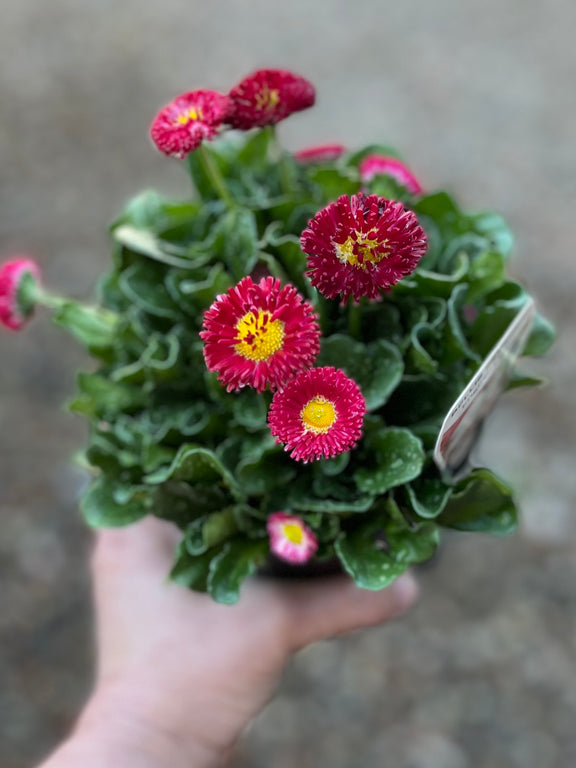 Bellis perennis, commonly known as the English daisy or common daisy, is a charming and versatile perennial known for its cheerful, daisy-like flowers. It is often used in garden beds, borders, and as ground cover.