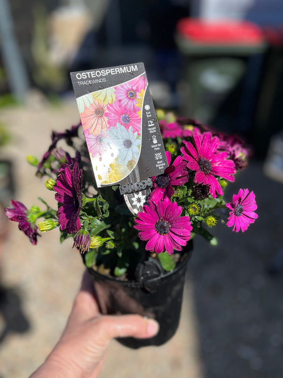 Osteospermum 'Tradewinds' is a popular variety of African daisy known for its vibrant, daisy-like flowers and robust growth. It's a great choice for adding color to gardens, containers, or hanging baskets.