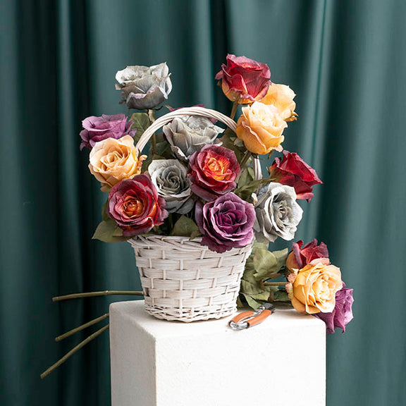 The Kenya Autumn-look Open Rose in Rustic Blue is a captivating artificial rose that adds rustic colouring and elegance to any setting. Made from premium materials, this warm multi-tonal rose is perfect for enhancing your home decor, floral arrangements, or special events.